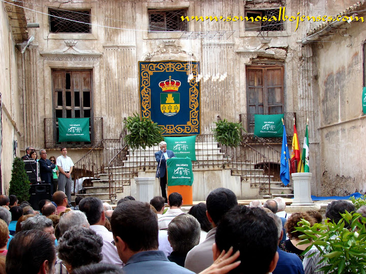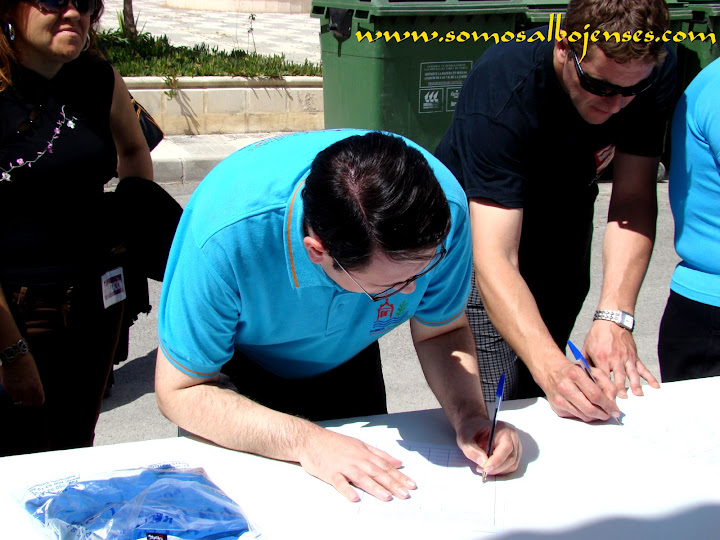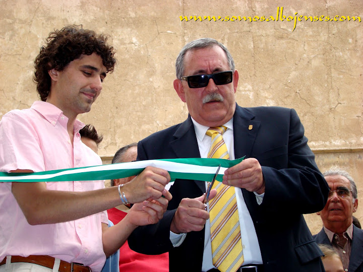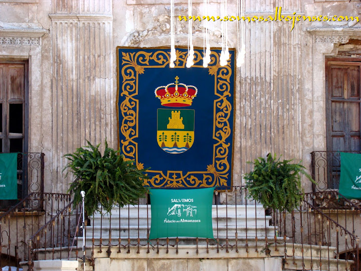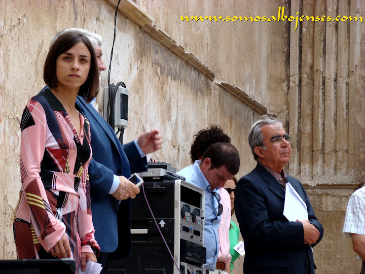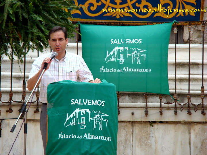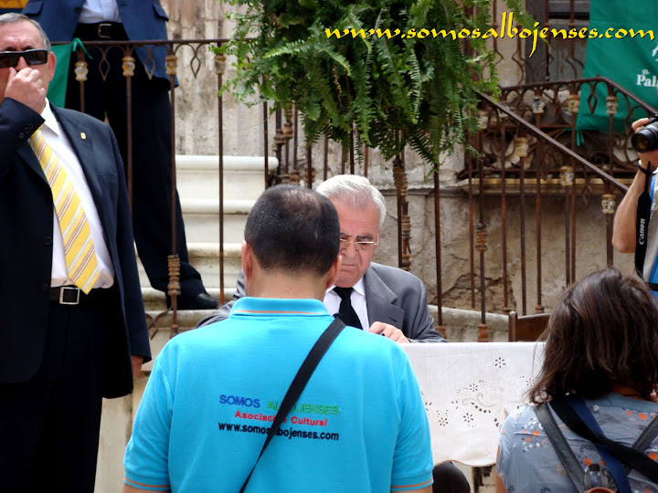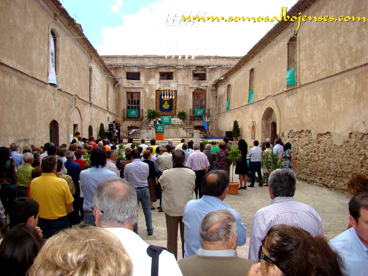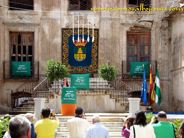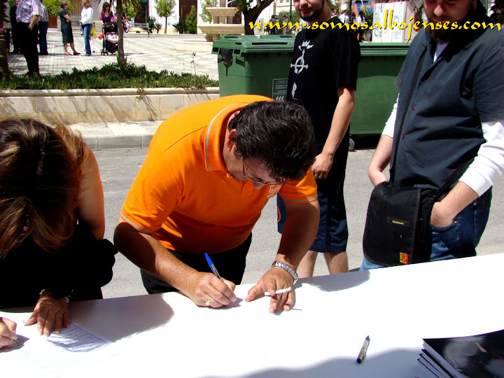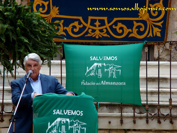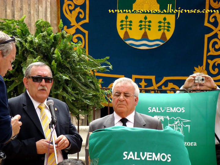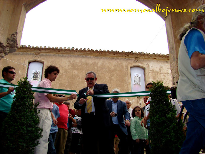 Antes de que se produjera el corte de la cinta , inagurando este Acto tan importante, los miembros de la Asociacion Cultural Somos Albojenses estuvimos en la recogida de firmas donde se pedía la restauración del Palacio de ALMANZORA: